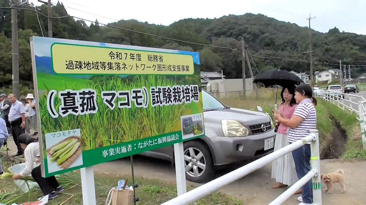 「総務省の令和7年度過疎地域等集落ネットワーク圏形成支援事業」での真菰試験栽培場のマコモダケの収穫最盛期の10月18日(土)に「真菰と竹の秋祭り」イベントを長谷小学校跡地会場にて開催しました。 ながたに振興協議会ではこれまで地域活性化として竹の活用や酵素風呂の運用を行っていく中で地域外の多くの方々との交流が生まれ、今回の秋祭りイベントもその様な方々にも多くの協力をいただきました。 今回初めての秋祭り開催でしたが、おかげで主催者側の予想を超える盛大なイベントとなりました、県外を含め参加していただいた皆さん、そしてイベントに協力していただ いた地元及び地域外の皆様、日本文理大学の皆さん、大変有難うございました。