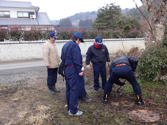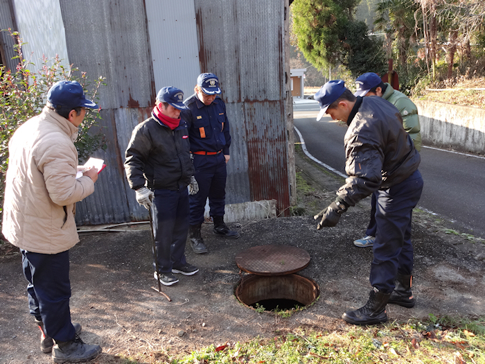 新しい年の10日の日曜日、豊後大野市で出初め式が行われました。 長谷地区の消防団は犬飼第2分団に所属しています、今年は地元での待機組で長谷地区に有る3部の各部の拠点に朝8時に集まって設備や防火用水槽の点検作業を行いました。 防火用水の水位を点検して水位の少ない用水槽にはポンプを使って補給作業を行いました。