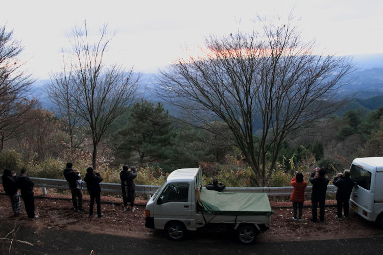 東の遠方の雲の切れ目からのすばらしい初日を拝むことが出来ました、それは初日を参拝するために雲に少し空間を作ってくれているかの様でした。