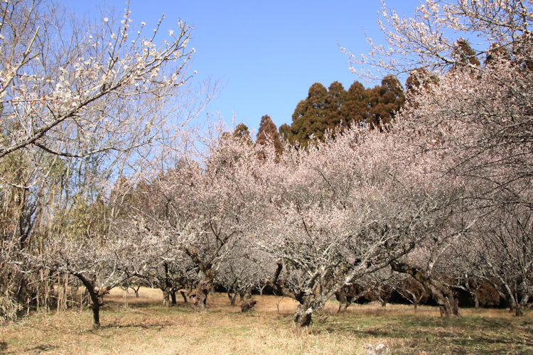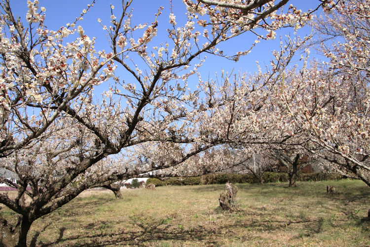 令和8年02月23日 梅の花 拡大写真 [スライド表示] 令和8年02月23日、2月なのに4月の様な暖かな祝日、長谷地区長畑区の梅園の梅の花が満開できれいです。 手入れされた梅の巨木の新芽からの花は梅の枝と調和して日本的な美しさです。