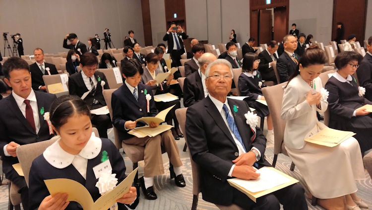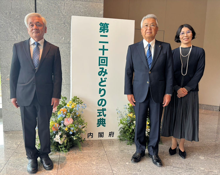 令和8年04月24日、第20回みどりの式典にて「ながたに振興協議会」が、緑化推進運動功労者内閣総理大臣表彰を受賞しました。 令和8年は全国から12団体が内閣総理大臣表彰を受賞しその中の団体に選ばれた栄えある受賞です。 式典はパレスホテル東京にて、天皇皇后両陛下御臨席のもと、国歌斉唱、高市内閣総理大臣の式辞と授与、記念撮影などが執り行われました。 式典には、長谷振興協議会から赤峰会長、森事務局長他、大分県おおいた創生推進課、豊後大野市まちづくり推進課の関係者合わせて6名で出席しました。 式典中は写真撮影できないので、昨年の式典の様子を林野庁HPから紹介します。 今回受賞の功績概要から一部抜粋 平成29年以降、同団体は住民生活や農林業に深刻な影響を及ぼしていた竹林の繁茂に着目し、地域一体となって竹の伐採と整 備を進め、生活環境の確保や景観改善に寄与するとともに、住民 が主体的に森林整備へ参加する体制を整えてきた。さらに、伐採 した竹を堆肥やチップ燃料に加工して活用する森林資源の循環利用を実現するほか、竹を加工して製造した竹パ ウダーと米ぬかの発酵熱を活用した酵素風呂施設の運営を行っている。・・・