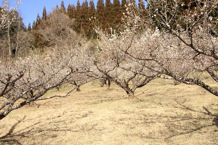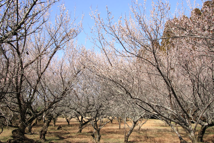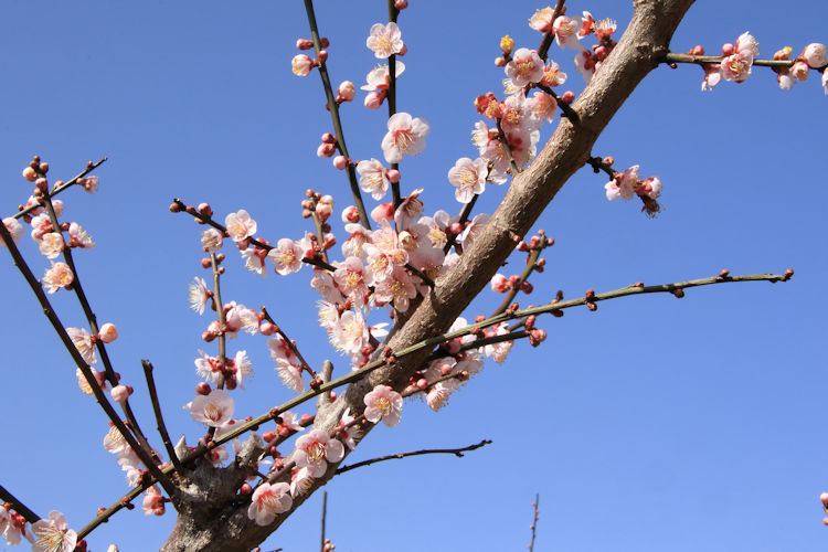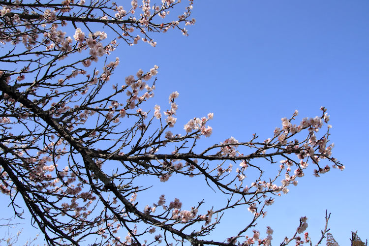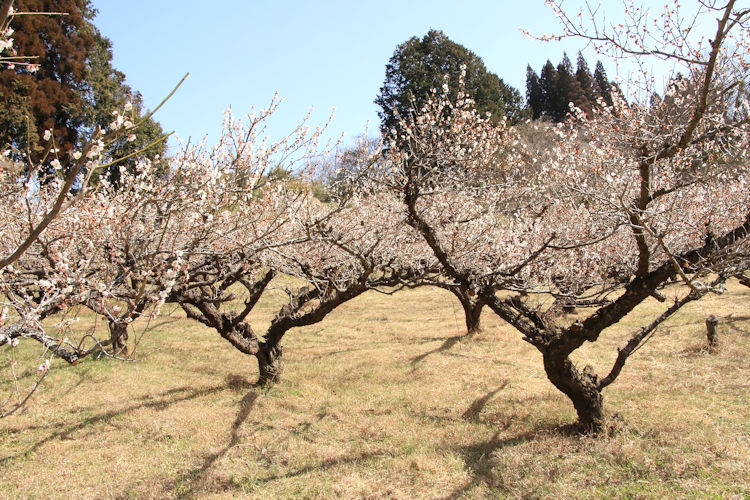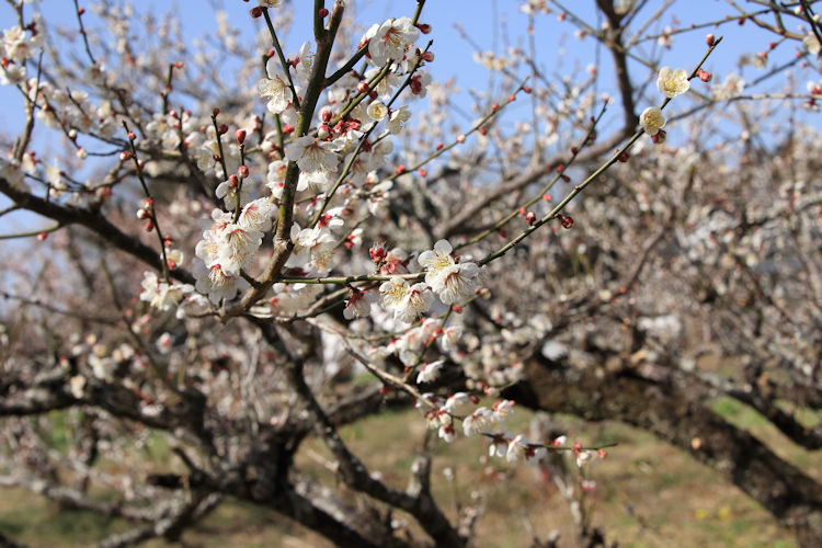 令和8年02月23日 梅の花 拡大写真 [スライド表示] 令和8年02月23日、2月なのに4月の様な暖かな祝日、長谷地区長畑区の梅園の梅の花が満開できれいです。 手入れされた梅の巨木の新芽からの花は梅の枝と調和して日本的な美しさです。