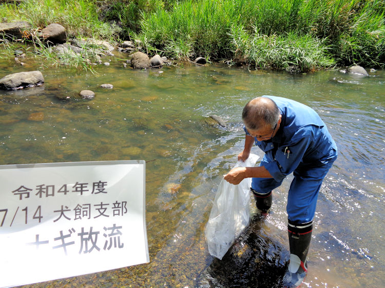 7月14日(木)、大野川漁協犬飼支部(赤峰映洋支部長)はウナギの稚魚17sを放流しました。 7sを大野川本流へ、10sを5sずつに分けて、柴北川の二か所へそれぞれ放流しました。 柴北川の放流場所は、樋口橋上流と衣掛橋下流のです。 日田市の養鰻場から仕入れた大きさ10p〜20pの稚魚は、放流後はそれぞれ元気に泳いでいました。 23日(土)は土用の丑の日ですが、放流したウナギが食べられるようになるのは、来年でしょう。 漁協からのお願いですが、鰻を獲るのには鑑札が要りますのでご注意ください。 また、20p以下はリリースする決まりになっています。 大切な資源ですので、大事に育てましょう。 {情報提供:渡辺雪法副会長}